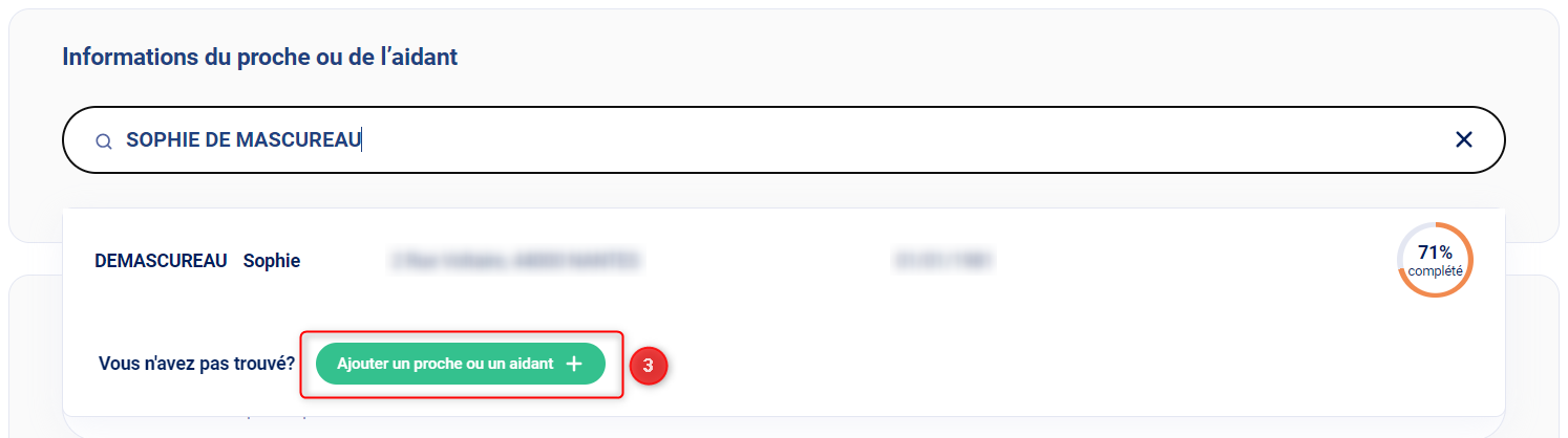 Sinon, cliquez sur la zone 3 pour ajouter un nouvel aidant et passez à l'étape 3.