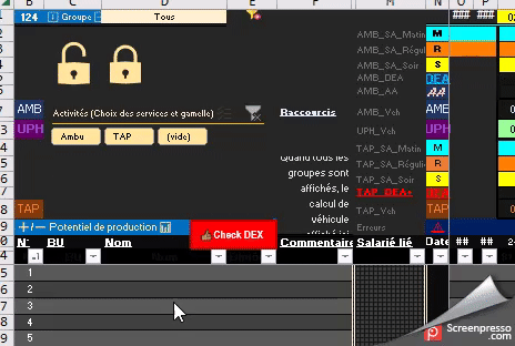Dans l'onglet Roulement, écrire le nom du salarié concerné dans la cellule Nom & Prénom en face de la ligne de roulement à laquelle on souhaite affecter le salarié.