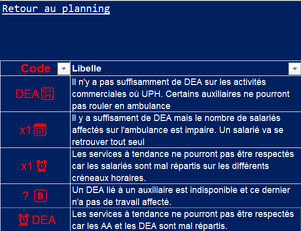 Lorsque vous construisez votre planning, certaines alertes apparaissent en ligne 19 ⚠️.