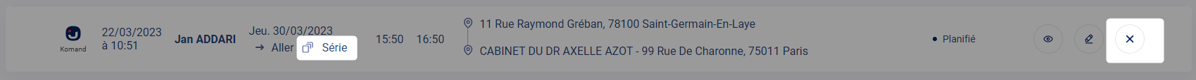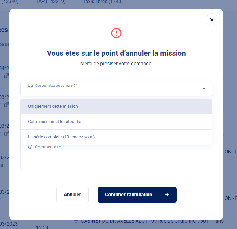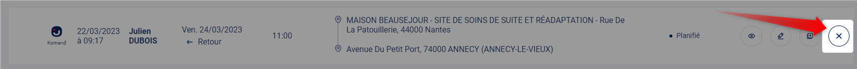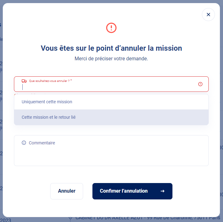 Il est possible d'annuler une mission, un aller/retour :