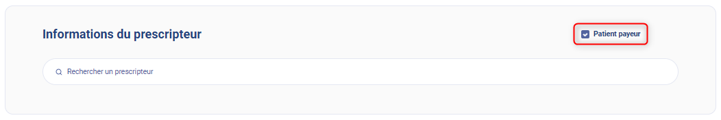 Si le prescripteur n'est pas connu du patient, cochez patient payeur pour rendre le champ facultatif