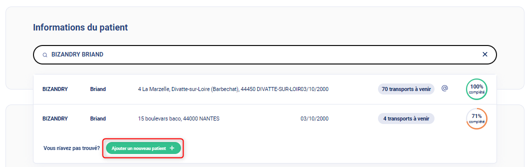 Si le patient ne figure pas dans les résultats, cliquez sur Ajouter un nouveau patient. Et complétez les informations du patient.