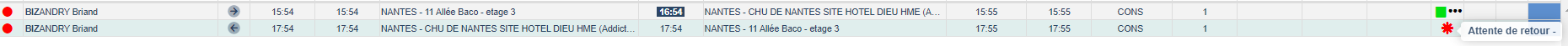 Lorsque le trajet retour d'une mission a un marqueur "Attente retour" et que celui-ci n'a pas encore été déclarer nous avons l'affichage suivant dans la régulation de Lomaco :