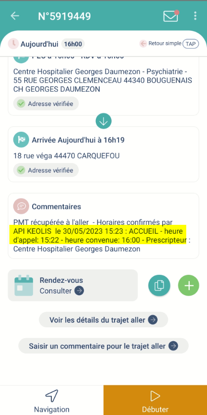 Résultat côté App Ambulancier