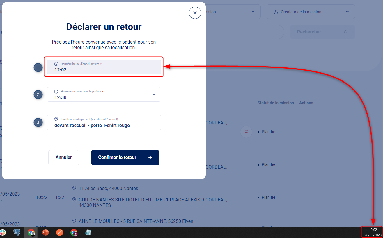 ✒️ Déclarer un retour sur le planning des missions