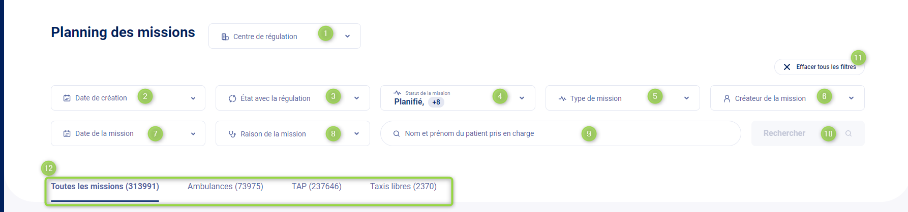 Filtres des missions par type