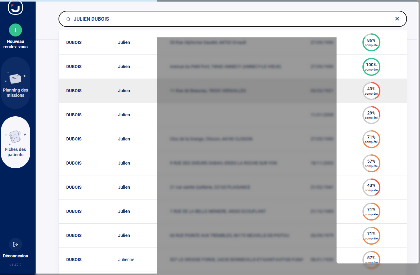 Pour chaque patient de l'annuaire, on retrouve dans les résultats de recherche :