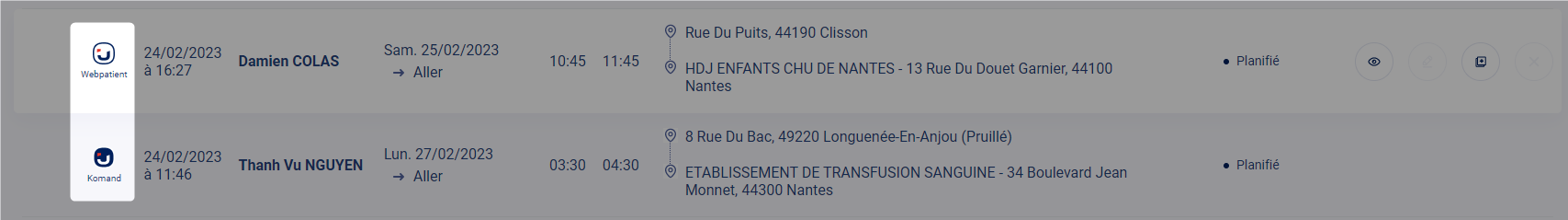 Dans le planning des missions on retrouve les commandes crées depuis différentes sources :