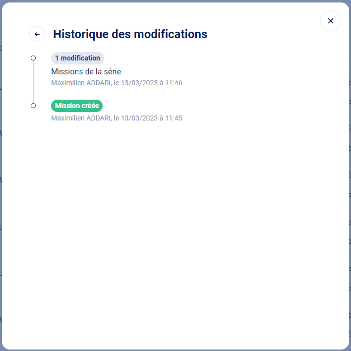 Pour chaque modification de la mission ou de la série de mission, un évènement est créé ou ajouté dans la page.