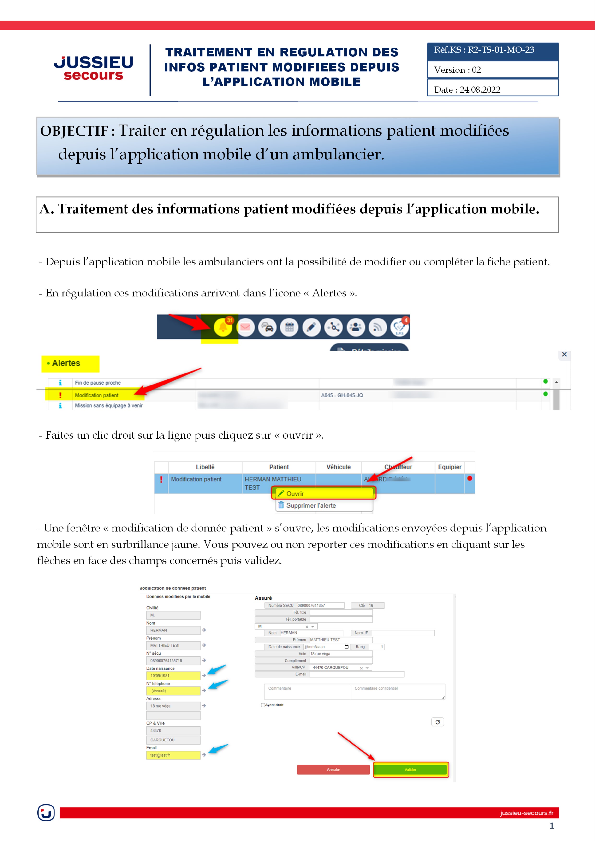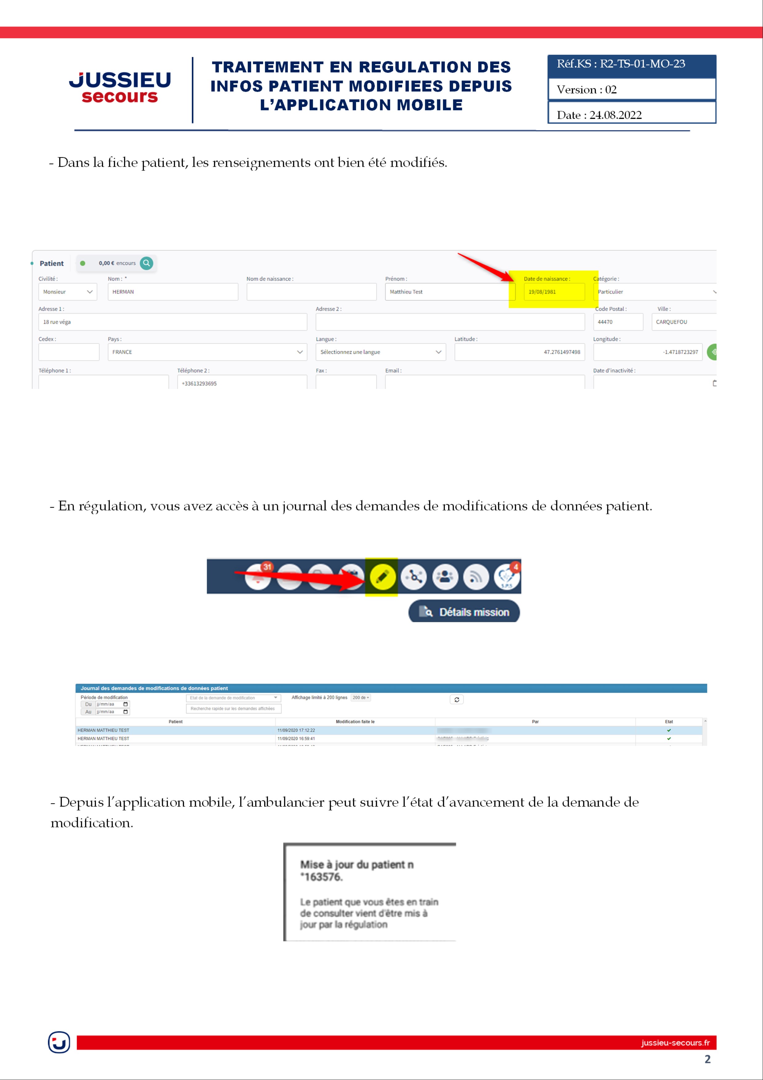 ✒️Régulation - Traitement des infos patients modifiées depuis l'application mobile