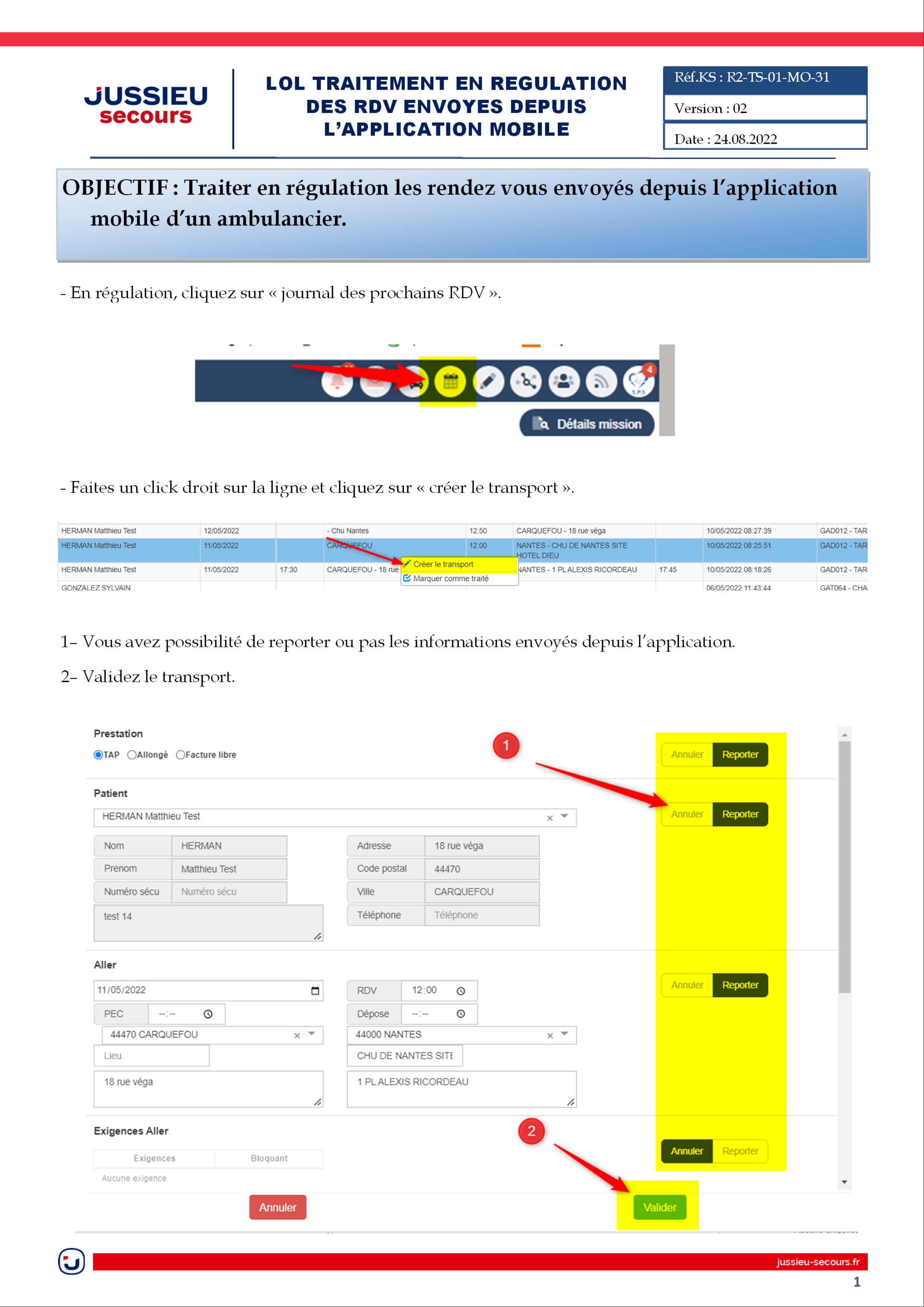 ✒️Régulation - Traitement des rendez-vous envoyés depuis l'application mobile