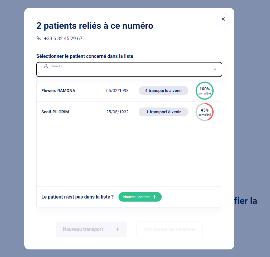 Nouveau transport - Et enfin, vous pouvez également accéder à l'ensemble des transports à venir pour ce patient en cliquant sur