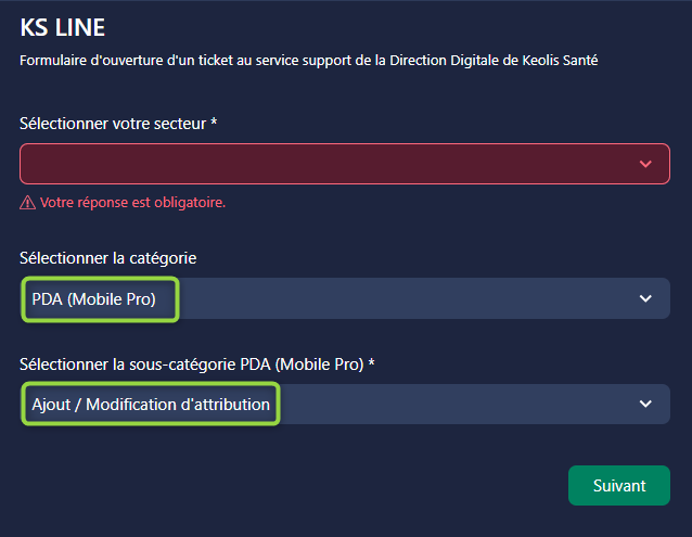 Dans le formulaire Wrike vous avez une entrée dédiée à l'ajout / modification d'attribution d'un mobile.